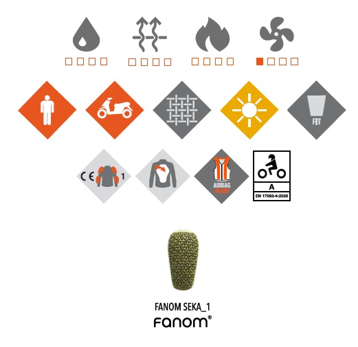 • protecții pentru umeri si coate: Protecții Fanom® SEKA_1, Tip A Nivel 1;