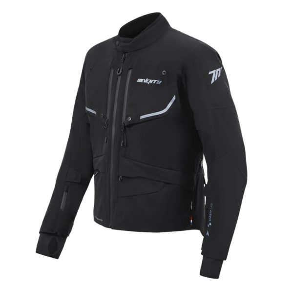Jacheta Seventy 70 SD-JT45 Expedition este concepută pentru cei mai exigenți motocicliști, oferind protecție și confort în orice vreme și teren. Fabricată dintr-un material laminat durabil, de înaltă rezistență, această jachetă încorporează tehnologiile avansate Dry70, Warm70 și Atop, oferind impermeabilitate, izolație termică și o potrivire personalizată pentru un confort de neegalat pe călătoriile lungi. Orificiile de ventilație magnetice la nivelul pieptului și ajustările magnetice ale bicepșilor permit reglarea rapidă și eficientă a temperaturii. Jacheta dispune de protecții Windflex de Nivel 2 la nivelul coatelor și umeri, precum și de un buzunar pentru o protecție opțională pentru spate. Detaliile din neopren de pe guler și zonele reflectorizante sporesc siguranța în condiții de lumină slabă.