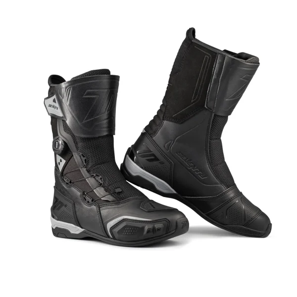• ghetele Seventy 70 SD-BT9 Gavia combină stilul sport-touring cu un design înalt, ideal pentru plimbări lungi în diferite condiții. Fabricate din piele sintetică și nailon, aceste cizme integrează tehnologia Dry70 cu o membrană impermeabilă și material Airknit pentru ventilație și protecție optimă în orice vreme;